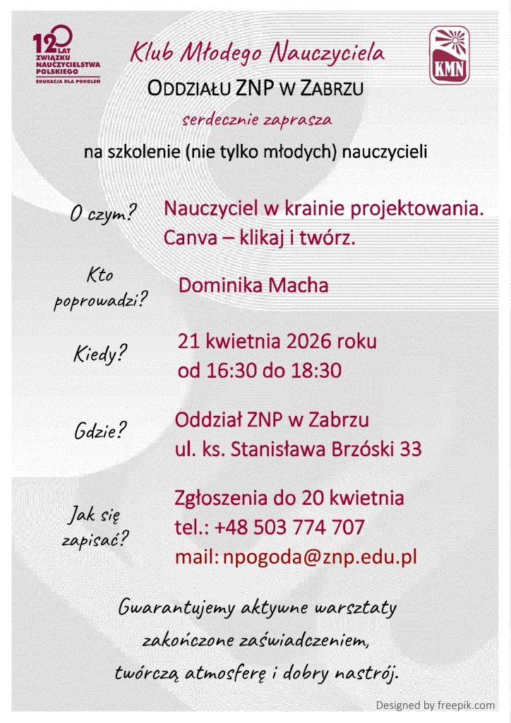 Niepubliczna Placówka Kształcenia Ustawicznego ZNP w Chorzowie zaprasza na szkolenie podstawowe w formie webinarium (online, MS Teams) skierowane do osób pełniących funkcję Zakładowego Społecznego Inspektora Pracy w placówce: „Zakładowy Społeczny Inspektor Pracy – szkolenie podstawowe” (18 godz. dydaktycznych) Termin: 19-20 marca 2026 r. (czwartek-piątek) w godz. 8:30 – 15:30 Koszt od uczestnika: 380 zł / 350 zł członkowie ZNP Zapisy […]