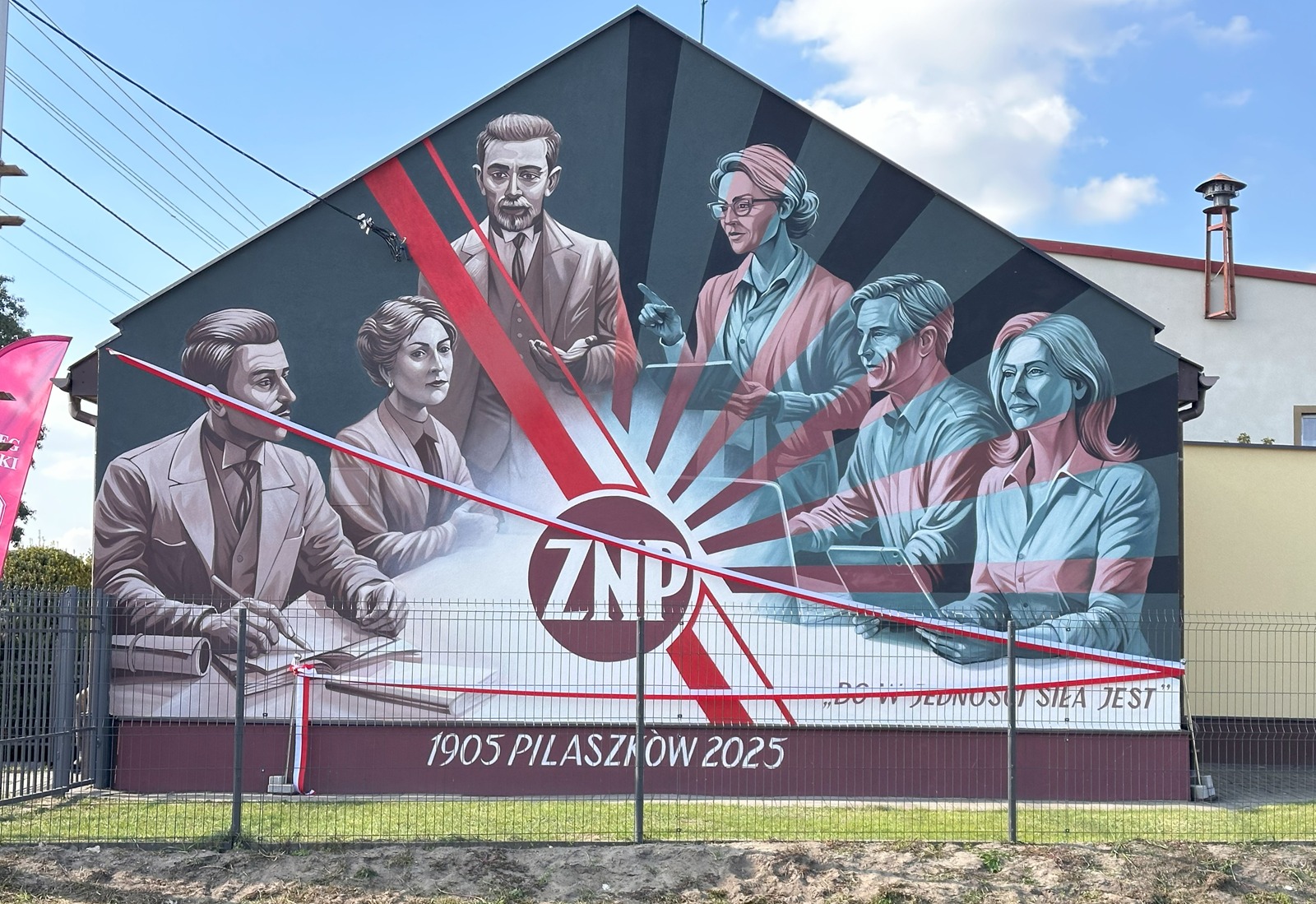 Pilaszków – kolebka Związku Nauczycielstwa Polskiego. Nic więc dziwnego, że w tym miejscu w dniach 3-4 października 2025 roku zgromadzili się przedstawiciele wszystkich okręgów, by wziąć udział w Ogólnopolskich Obchodach Jubileuszu 120-lecia ZNP. W ramach tych uroczystości odsłonięto znajdujący się na budynku dawnej szkoły (obecnie muzeum związku) mural, który stworzył Marcin Tybuś „Tyber”, artysta związany z Łowiczem. Malowidło przedstawia uczestników zjazdu z 1905 r. Zygmunta Nowickiego, Stefanię Sempołowską i Stanisława Najmołę oraz współczesnych nauczycieli korzystających w swojej pracy z osiągnieć techniki. Mural symbolizuje pomost między przeszłością a teraźniejszością, tradycją a nowoczesnością, dawnym a obecnym pokoleniem.