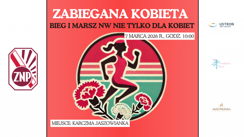 Tuż przed Dniem Kobiet, czyli 7 marca 2026 roku, Zarząd Oddziału ZNP w Ustroniu oraz Zarząd Oddziału ZNP w Cieszynie organizują Bieg i Marsz Nordic Walking z Okazji Dnia Kobiet – ZABIEGANA KOBIETA, na który serdecznie zapraszają wszystkich lubiących wszelką aktywność na świeżym powietrzu, gdyż – można biec, można spacerować, można być mężczyzną:) Miejsce wydarzenia: Ustroń Jaszowiec.