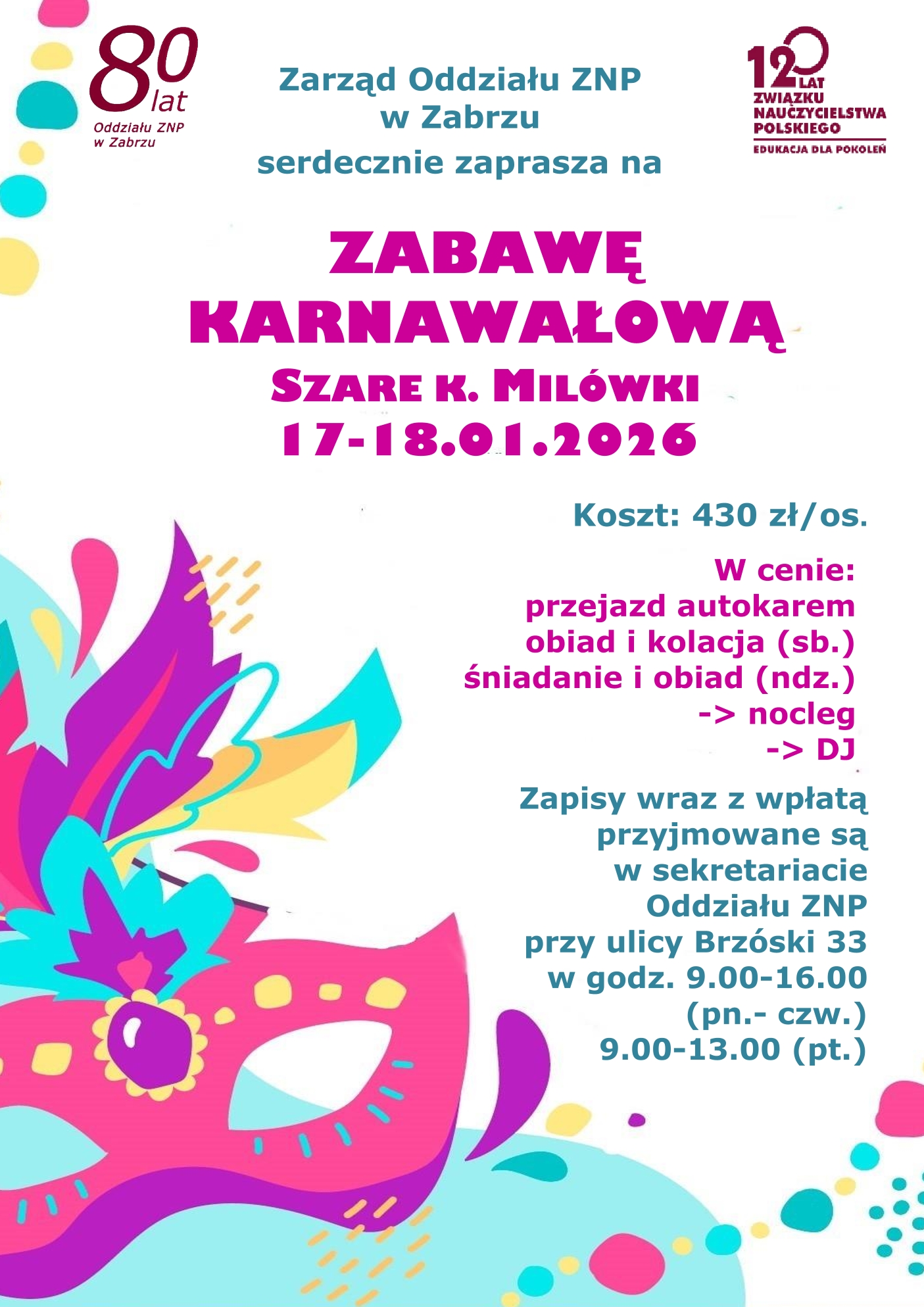 Informujemy, że w okresie wakacyjnym biuro Oddziału ZNP w Zabrzu będzie czynne: od poniedziałku do czwartku w godzinach od 9.00 do 13.00