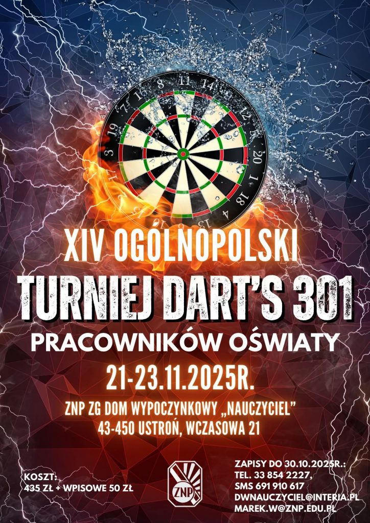 Sprawdzian celności – zapraszamy na XIV Ogólnopolski Turniej Dart’s 301 Pracowników Oświaty