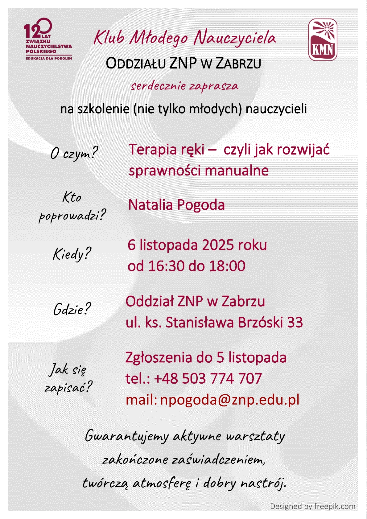 Już w maju Klub Młodego Nauczyciela rozpoczął cykl warsztatów – wtedy to kol. Monika Stojak wprowadziła przybyłych w tajniki logorytmiki, a tym razem kol. Natalia Pogoda zadbała o to, by uczestnicy umieli wesprzeć rozwój motoryki małej. Prowadząca z entuzjazmem i profesjonalizmem zapoznała obecnych z różnorodnymi ćwiczeniami, technikami oraz narzędziami, które można wykorzystać w codziennej pracy. Oczywiście nie tylko teoria gościła na tym szkoleniu – w ruch poszły także baloniki, nakrętki, karty do gry. Aktywność uczestników i atmosfera podczas spotkania były niesamowite. Dziękujemy za liczne przybycie i zapraszamy na kolejne szkolenia. Do zobaczenia 🙂