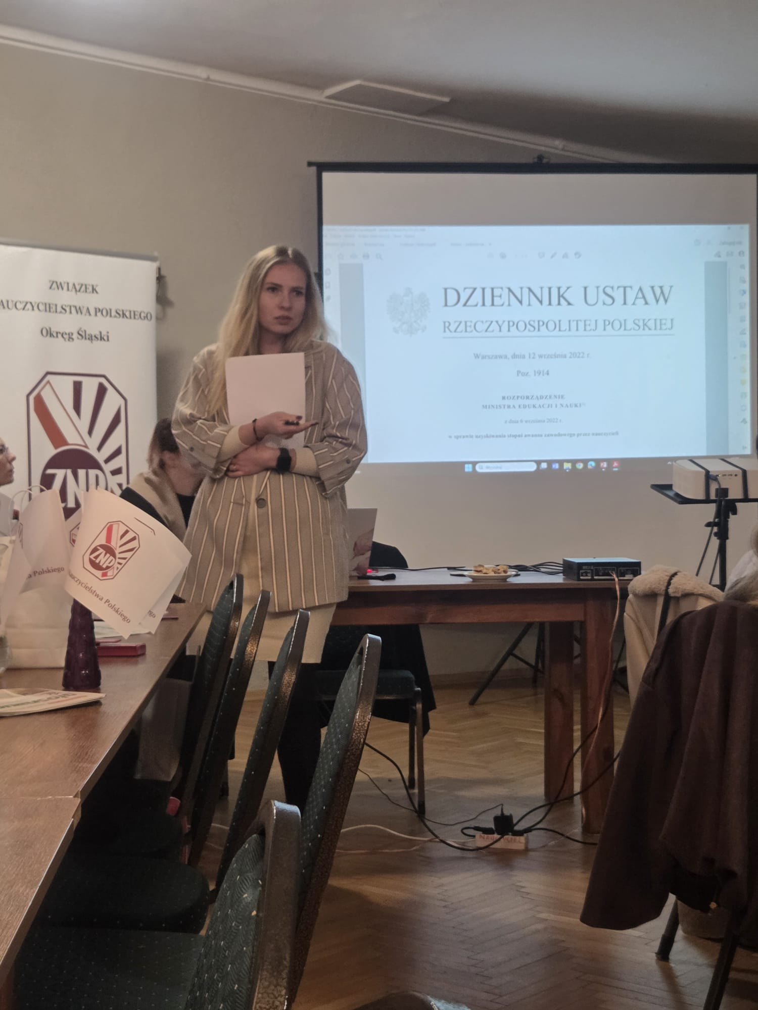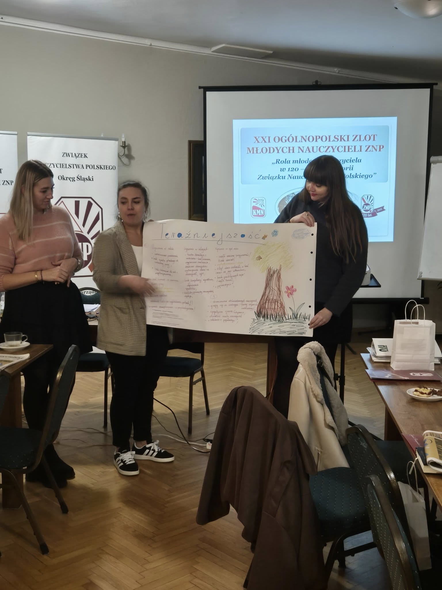 DW Nauczyciel w Ustroniu – Jaszowcu gościł 15 listopada uczestników XXI Ogólnopolskiego Zlotu Młodych Nauczycieli ZNP, który odbywał się pod hasłem „Rola młodego nauczyciela w 120- letniej historii Związku Nauczycielstwa Polskiego”. Nasz Oddział reprezentowały: kol. Klaudia Stępniak (zastępczyni przewodniczącej KMN), kol. Jolanta Jaskółka (członkini ZG ZNP, wiceprezeska OŚ ZNP i prezeska Oddziału ZNP w Zabrzu) oraz kol. Natalia Pogoda (członkini CKMN i przewodnicząca KMN), która współprowadziła spotkanie. W programie znalazły się m.in.: wprowadzenie do tematyki konferencji przez kol. Anetę Mastalerz, wystąpienie kol. Jadwigi Aleksandry Rezler z ZG ZNP, dr Piotr Wierzbicki pochylił się nad „Historią nauczycielstwa polskiego na przestrzeni 120 lat”, kol. Ewa Niedbała zajęła się „Awansem zawodowym nauczycieli w świetle aktualnych przepisów”, a koleżanki Justyna Czyrnek-Rak oraz Natalia Pogoda poprowadziły warsztaty dotyczące przeszłości, teraźniejszości i przyszłości ZNP. Zlot obfitował w konstruktywne wymiany poglądów, twórcze działanie, wymianę doświadczeń, a to wszystko w pełnej pozytywnej energii atmosferze.