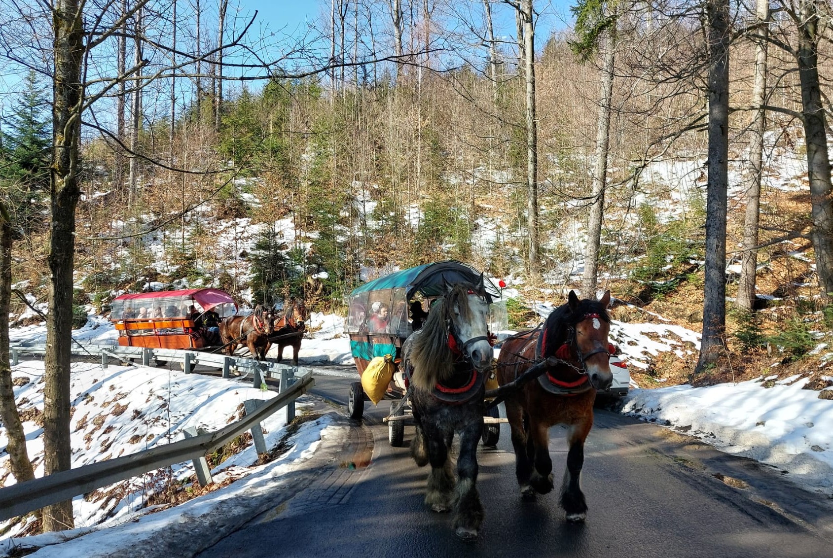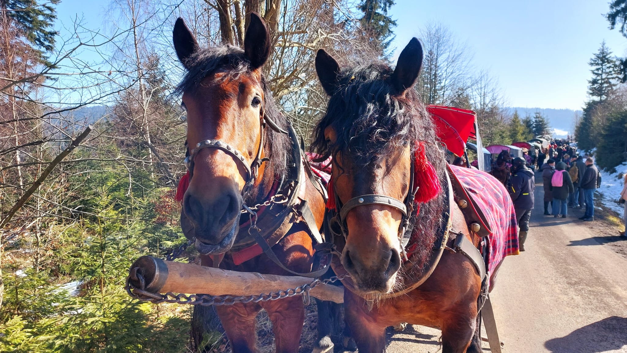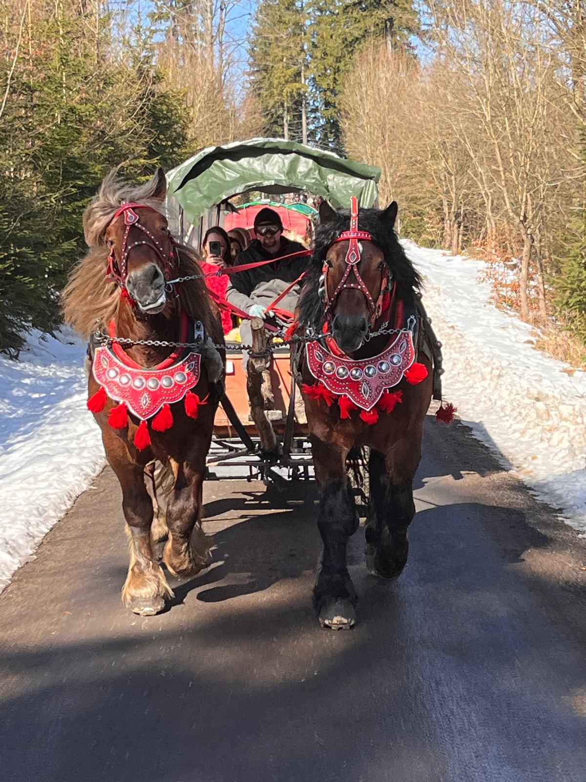 Wprawdzie śnieg był raczej pobocznym towarzyszem naszego kuligu Przełęczą Kubalonki, jednak promienie słońca, piękne widoki, a przede wszystkim uczestnicy wyprawy sprawili, że był to czas wypełniony radością oraz odpoczynkiem od codziennych trudności. Czego chcieć więcej? Ano biesiady góralskiej w Kolybie „U górolki” z muzyką, śpiewami, tańcami, dobrym jadłem oraz napitkiem 🙂 I dopiero teraz możemy mówić o w pełni udanym wypadzie 🙂