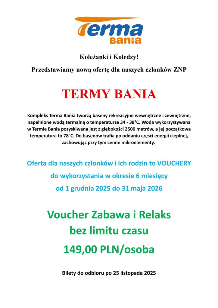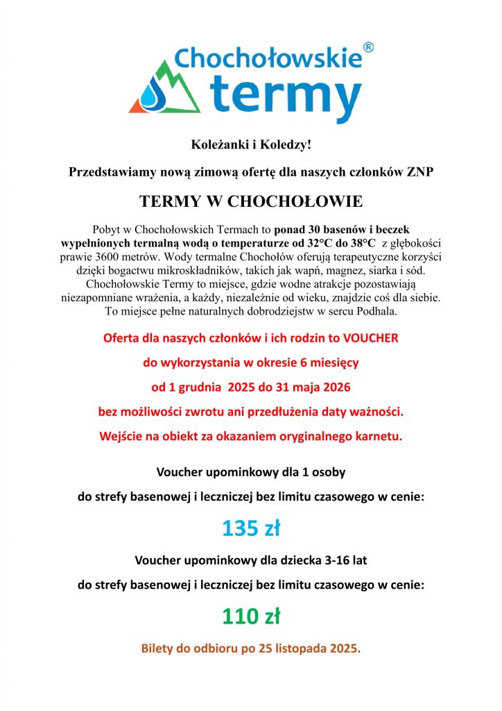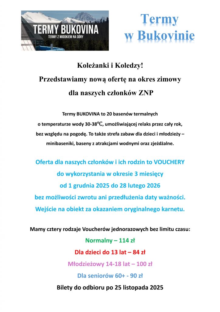 – > Termy – zgłoszenia wraz z wpłatami w biurze Oddziału do 31 października.