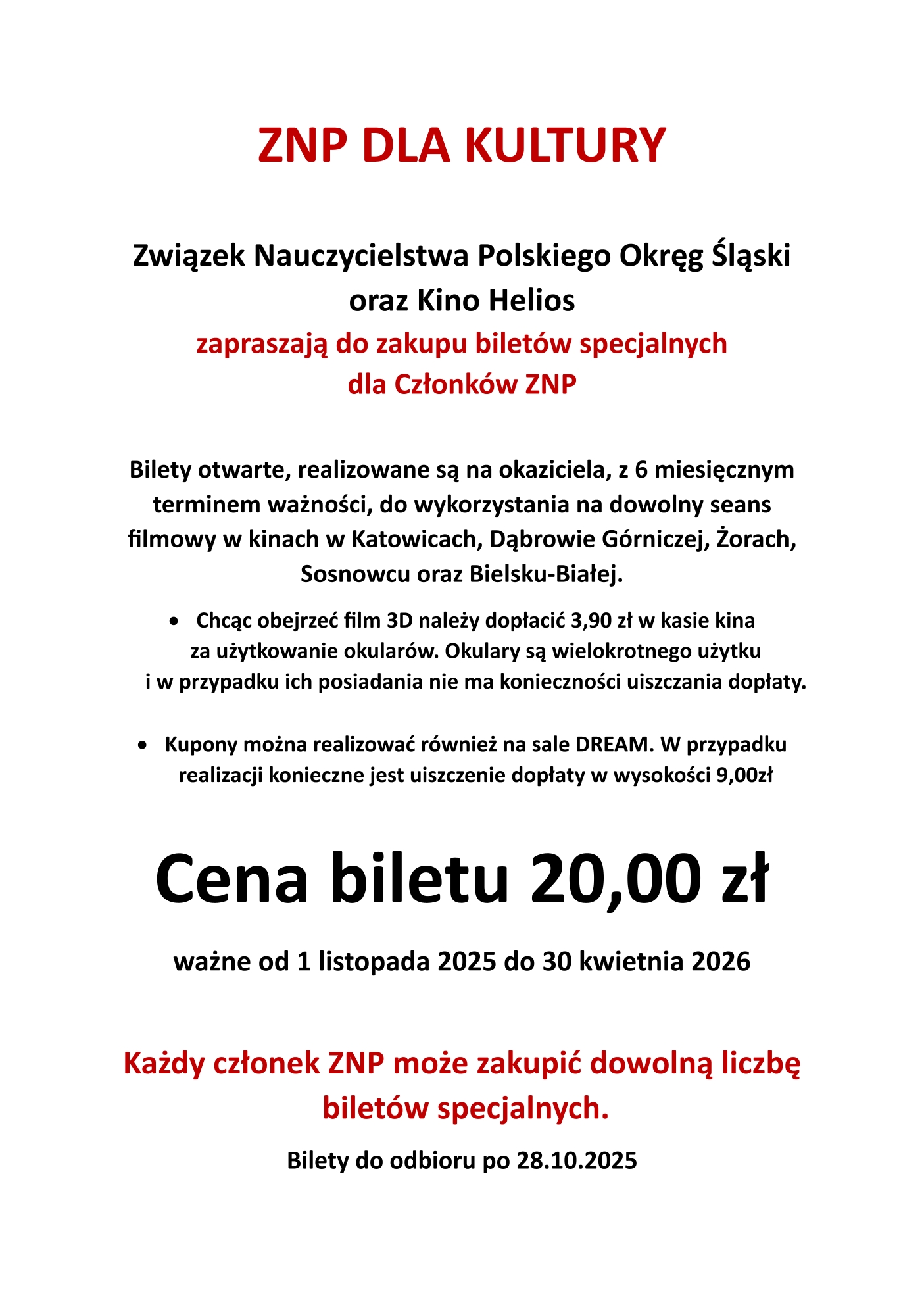 – > Bilety do Kina Helios – zgłoszenia wraz z wpłatami w biurze Oddziału do 9 października.