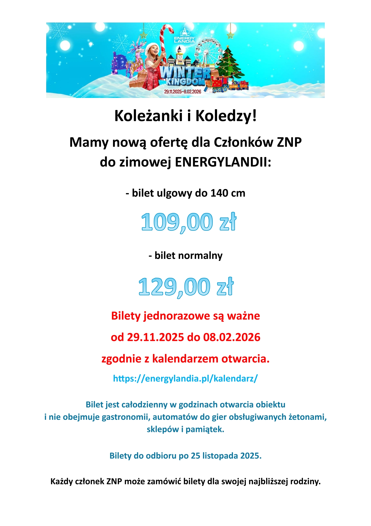 – > Energylandia zimowa – zgłoszenia wraz z wpłatami w biurze Oddziału do 31 października.
